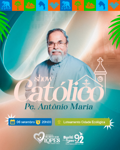 Em comemoração ao aniversário de 92 anos de nossa cidade, a Prefeitura de Buriti dos Lopes tem a satisfação de convidar toda a população para uma noite especial de fé e emoção.