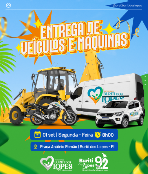 Venha prestigiar esse momento especial e ver de perto os novos veículos e máquinas que irão impulsionar o desenvolvimento de Buriti dos Lopes. Contamos com você!