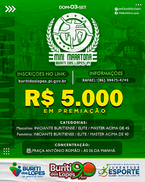 INSCRIÇÕES DA MINI MARATONA DE BURITI DOS LOPES